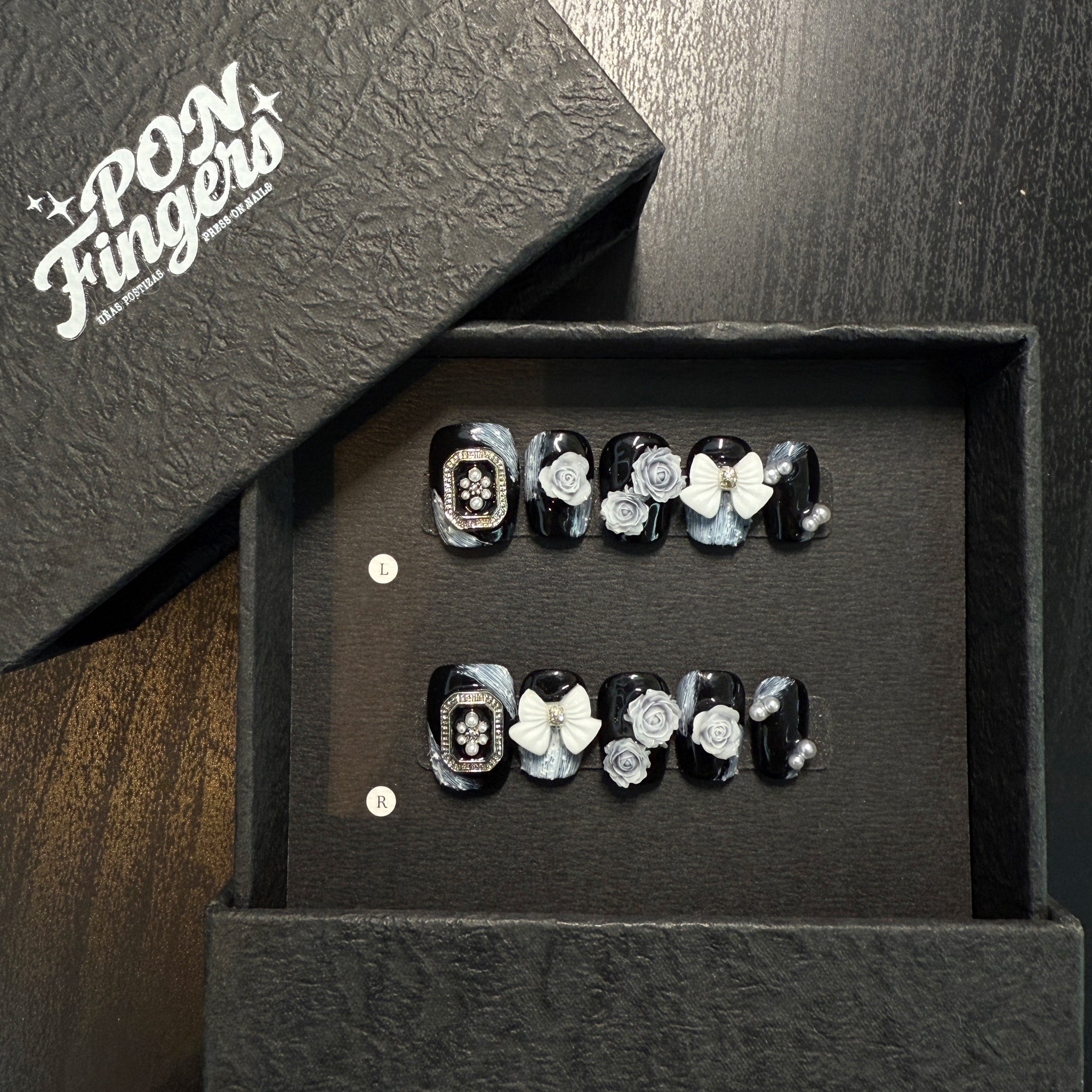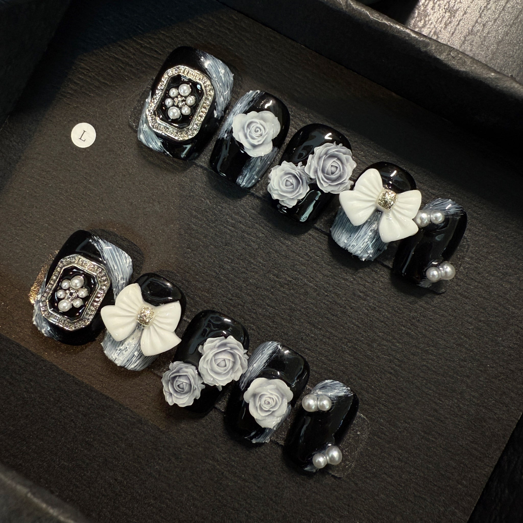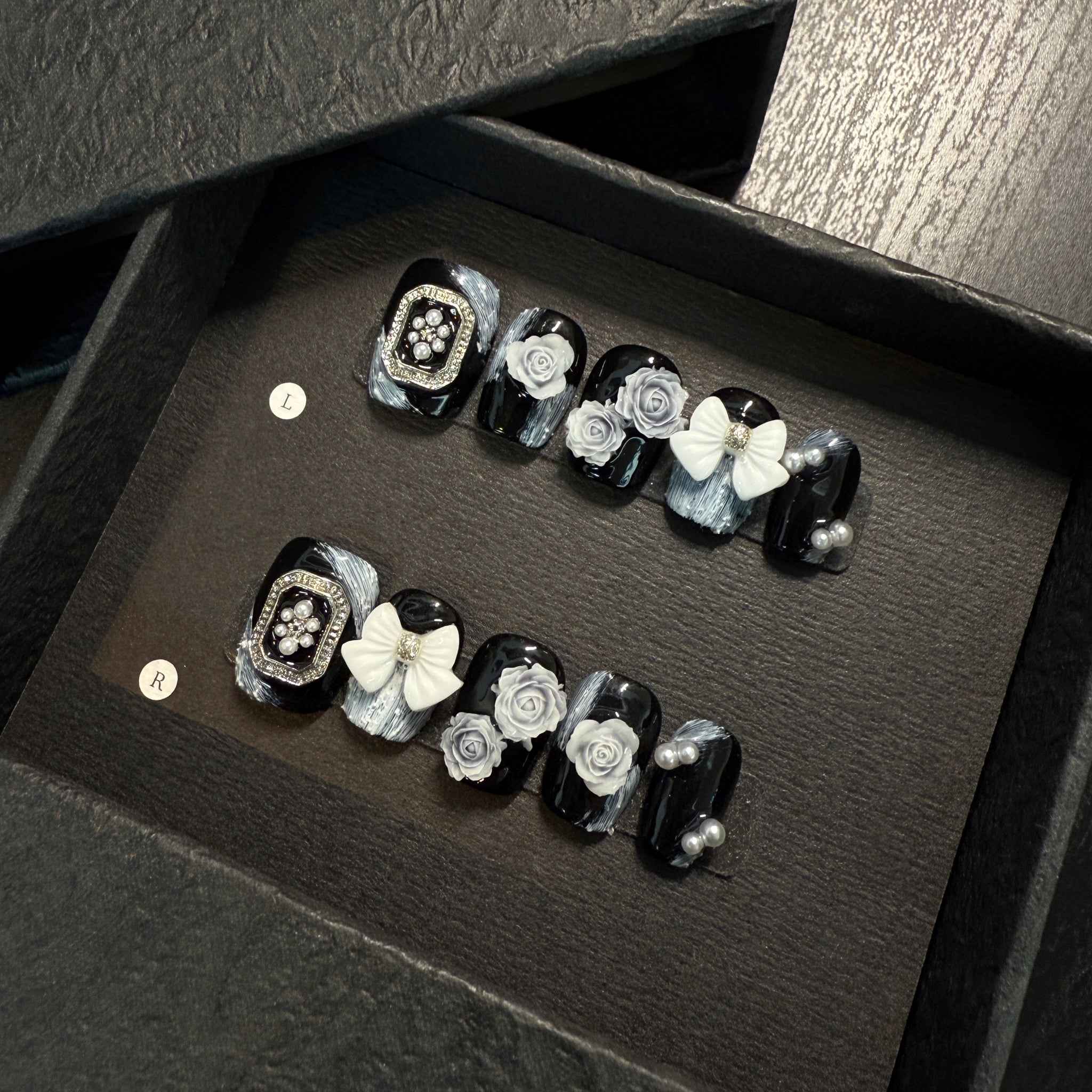 Un diseño elegante y sofisticado que combina azul marino y azul cielo, decorado con delicadas flores que aportan un toque femenino y clásico. Perfecto para quienes buscan un look atemporal, refinado y lleno de encanto.